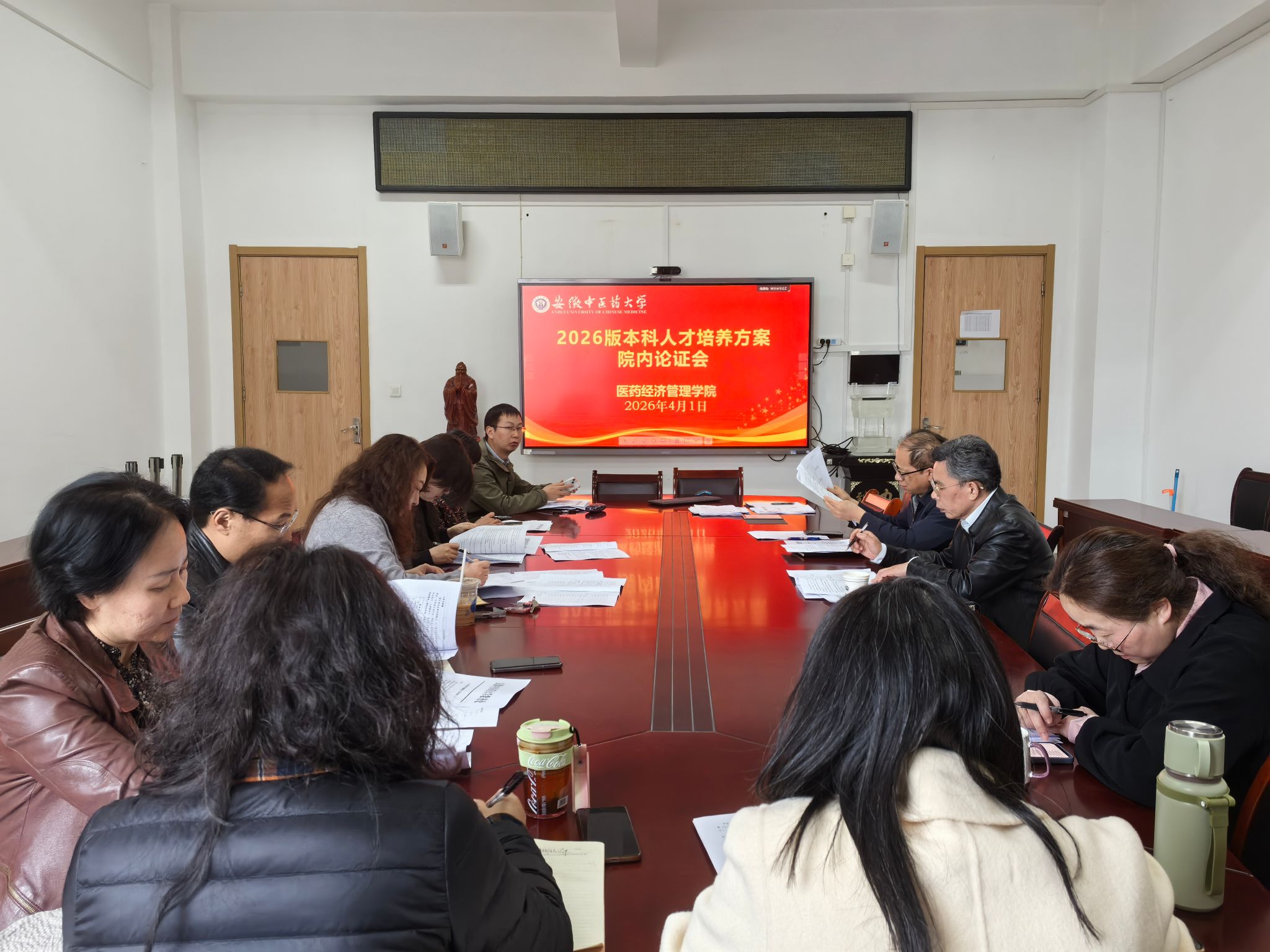 为进一步落实学校关于2026版本科人才培养方案修订工作的部署要求,持续优化人才培养体系,4月1日,医药经济管理学院组织召开2026版本科人才培养方案院内论证会。会议由学院副院长陶群山主持,各教研室主任及教学督导参加会议。