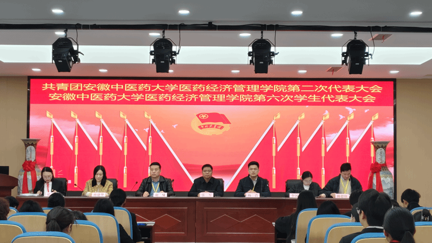 1121日,共青团安徽中医药大学医药经济管理学院第二次代表大会、安徽中医药大学医药经济管理学院第六次学生代表大会在学院429报告厅隆重召开。校团委副书记杨浩、医药经济管理学院党委书记张军、党委副书记谢啸、学院全体辅导员及118名学生代表共同出席大会。会议由学院团委负责人张亚丽主持。
